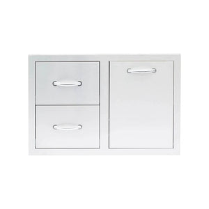 Enhance your outdoor kitchen with the Summerset 33" Masonry Frame Access Door & Double Drawer Combo. Durable 304-grade stainless steel and ample storage space in a sleek, polished design. Perfect for use under a built-in gas grill with stable, easy-to-use double-lined doors and external flanges. Add functionality and style to your outdoor space with this versatile unit.