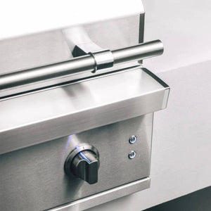 The AMG (American Made Grills) Atlas Series is a high-performance, luxury grill line made entirely in the USA. Elevate your outdoor lifestyle with the seamless design and superior performance of the Atlas Grill. #304 stainless steel construction, interior, and exterior lighting, and a dual-position warming rack system are just a few of the features that ensure you get the most out of your outdoor kitchen in both style and functionality. The flame-taming burner covers vaporize flare-ups and add grilling essence, while the all-new square cooking grates increase the contact surface with food, adding beautiful grill marks and unparalleled flavor.