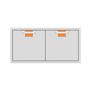 Experience the ultimate in outdoor storage with Aspire by Hestan's heavy-gauge stainless steel components. Its recessed Marquise-accented panels, commercial-grade handles, and welded-body construction offer unmatched durability and style. The alignment-adjustable hinges and Steeletto Hestan signature finish add the perfect touch to this 42" double access door, making it the perfect pairing for your Aspire outdoor grill.