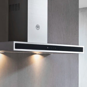 Enhance your Bertazzoni kitchen with this modern and powerful range hood. Includes 3 extraction speeds + booster and 600 CFM maximum flow. Control functions easily with a touch-through-glass interface. Enjoy bright and efficient LED lights and easily clean stainless steel mesh filters. 9' duct cover included, optional extension available. Convert between venting and recirculation with a charcoal filter kit.