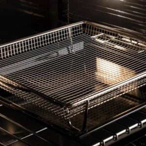 New Bertazzoni ranges are superb cooking appliances made in Italy. They have 5 high-power heating zones and a large, removable cast-iron griddle. The 5.7 cubic feet self-cleaning oven has a dual convection fan for precise temperature control and convenient features like telescopic glides and soft-close doors. It also comes with an air-frying mode and optional décor customization.