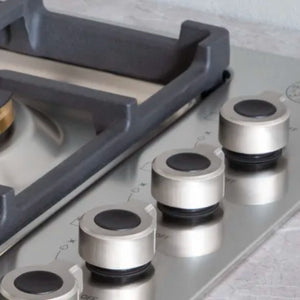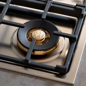 Experience Italian design and precision with Bertazzoni's drop-in gas cooktop. The 5 brass burners and cast iron grates allow for professional level cooking while the seamless stainless steel worktop makes clean-up a breeze. Safety is prioritized with 100% fail-safe thermocouple technology for peace of mind.