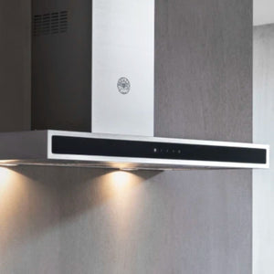 Enhance your Bertazzoni kitchen with this powerful 36" wall hood featuring 2 LED lights, 600 CFM, and a touch user interface with a glass panel. Easily control functions and reduce airflow with the digital flowthrough restrictor. Plus, enjoy energy-efficient and long-lasting LED lights, stainless steel mesh filters, and the option for recirculation with the charcoal filter kit