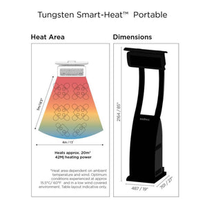 Efficiently warm your outdoor space with Bromic's Tungsten Portable Outdoor Heater, which can heat up to 200 square feet. Its directional heating element and wind resistance technology make it the top choice in quality and performance. Easy to start and control, this heater is perfect for any weather.
