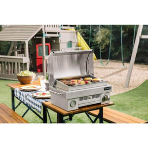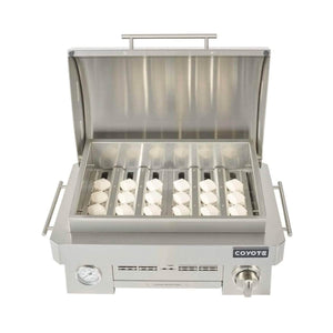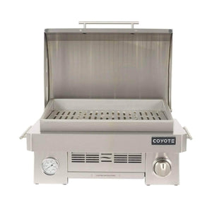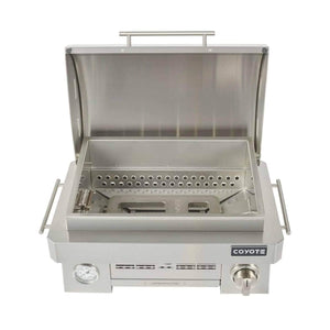 The Coyote Outdoor Living Portable Grill is perfect for traveling and tailgating! With about 200 square inches of cooking area, you can make all your favorite foods for your family and friends. Use this with either a 20-lb propane tank or a small propane canister (adapter included). It has one infinity burner capable of reaching up to 20,000 BTUs.
