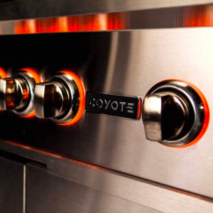 The S-Series from Coyote Outdoor Living aspires to exceed the highest standards. This grill series, available in 30", 36" or 42" sizes, offers various luxury items standard on every grill such as the Coyote stainless steel infinity burners, a rotisserie with an infrared burner, a smoker box, and RapidSear burners to help lock in natural juices and nutrients. Knobs backlit with LED lighting offer a great assist in nighttime cooking...and an impressive aesthetic.
