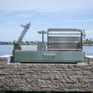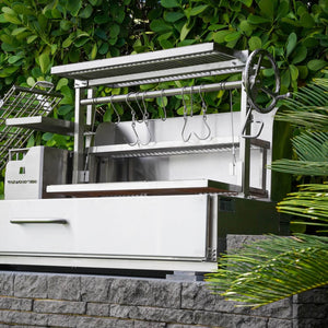The firebox gaucho style brasero allows you to light up the charcoal quicker and with less effort. It keeps your fire lit and away from the food. You can use wood charcoal or firewood based on your preference to grill like a gaucho. Slow cook some short ribs for 4 hours, some Argentine sausage or chorizo, or smoke a fish on the Clamp grill, or use the small removable grill for a closer to the embers cooking.