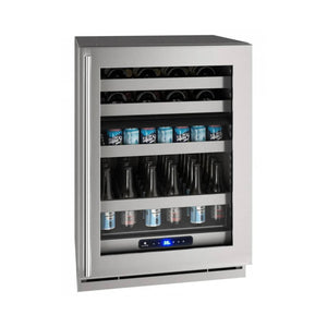 This 24" Beverage Center is a must-have for any home bar, offering ample storage for a variety of wine bottles, 12 oz cans, and bottles. The two temperature zones can be adjusted separately, making it ideal for storing a variety of wines and other drinks. Whether built-in or freestanding, this beverage center boasts convection cooling technology for quick cooling and consistent temperatures, powered by a state-of-the-art variable speed compressor with a temperature range of 34°F to 60°F. With easy access to touch panel controls, you can adjust internal temperatures in an instant. Plus, the industry-exclusive full-depth lower interior adds even more storage, complete with full-extension bins, shelves, and wine racks. The door comes right hand hinged, but can also be reversed in the field. Get ready to take your home bar to the next level with this incredible beverage center!