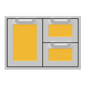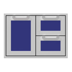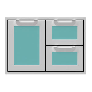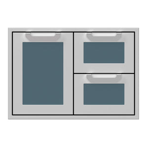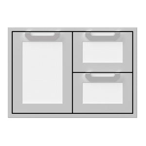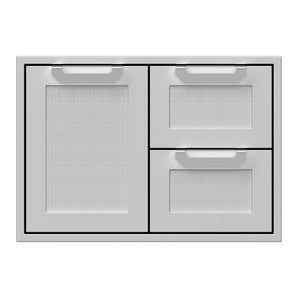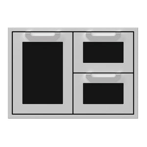 Combo door/drawers deliver highly convenient heavy-duty storage. The commercial-grade handles recessed Marquise Accented™ panels and heavy-gauge welded body complement Hestan grills in form and function.