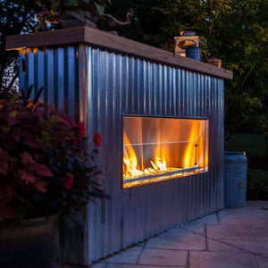 Experience modern luxury with the all-new Firegear Kalea Bay Linear Outdoor Fireplace. Its sleek and contemporary design requires no chimney or venting, making it a convenient and efficient choice for any outdoor space. Add ambiance and warmth with the option of LED or non-LED lighting.