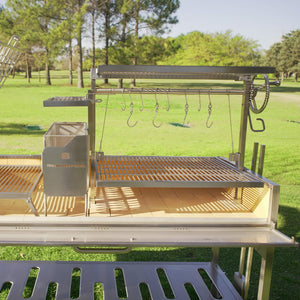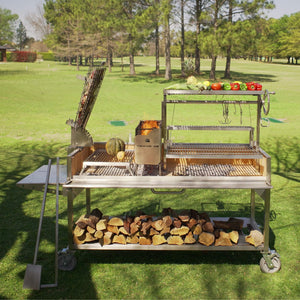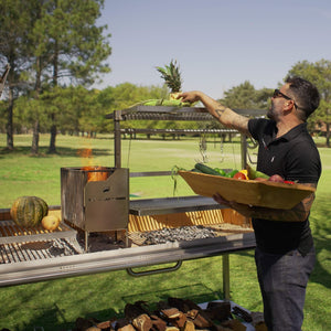 The firebox gaucho style brasero allows you to light up the charcoal quicker and with less effort. It keeps your fire lit and away from the food. You can use wood charcoal or firewood based on your preference to grill like a gaucho.