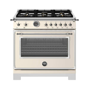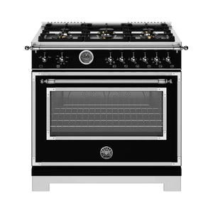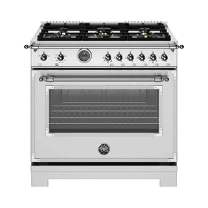 This 36" stainless steel range features 6 sealed burners and a gas broiler, with even heat distribution and easy-to-use features like telescopic glide shelves and a triple-glass door. Matching hood and backsplash sold separately.