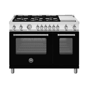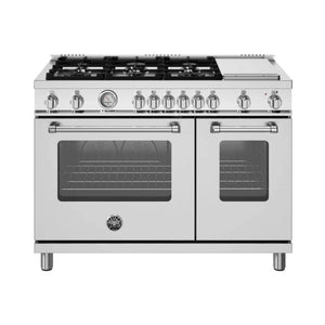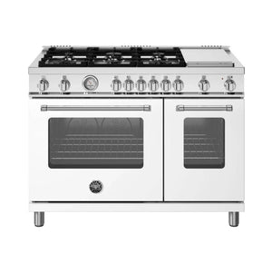 Enhance your kitchen with Bertazzoni Master Series ranges. Designed for versatility and precision, it includes a high-efficiency dual-ring power burner with up to 19,000 BTU. Each burner is carefully crafted in Italy for durability and performance. The gas oven features an extra-wide convection fan for even heat distribution and easy one-handed operation with soft-motion hinges. Plus, with a gas conversion kit for LP and a stainless steel electric griddle, you have even more cooking space and options.