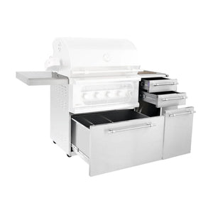 Elevate your outdoor grilling experience with our American-Made Grills 36" Muscle/Encore Freestanding Grill Cart (Cart Only). This stainless steel cart features heavy-duty locking casters, adjustable side shelves, and a spacious storage cabinet for all your grilling necessities. Perfect for enhancing the look of your patio or deck, this cart is built to last and make your grilling space more functional for years to come.