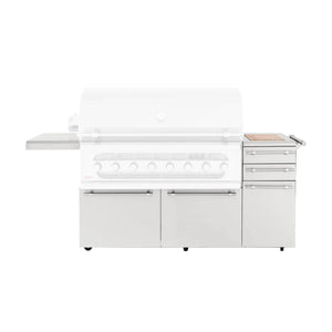 The American Made Grills CART-AMG54 provides a durable and stylish base for your 54-inch gas grill, equipped with a stainless steel cabinet, locking casters, side shelves, and a convenient condiment tray. Extend the life of your outdoor grilling space with this premier cart.