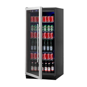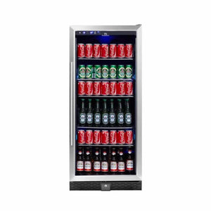 Whether you have a busy restaurant or the most popular club in town, this built-in drink fridge KBU-100BX with a glass door is the right cooling solution for you. Engineered to save you space while providing maximum storage, it is packed with innovative, energy-efficient systems. This 484-can single-zone beer cooler includes 5 chromed steel shelves and a glass door with stainless steel door trim for a sleek design that works with any decor.