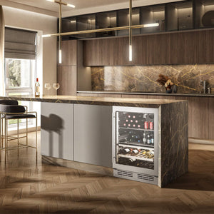 Keep drinks fresh with Elica's RISERVA - EBS52SS1 24" beverage & wine center. Dual cooling zones, UV-resistant double-layered glass doors, and Perfect Climate technology ensure optimal preservation. Must-have for drink collectors!