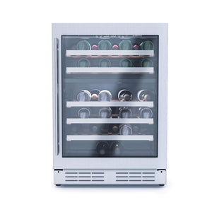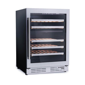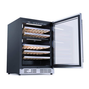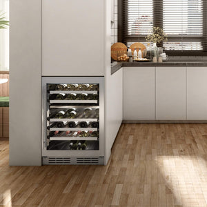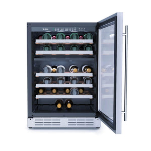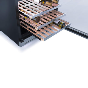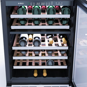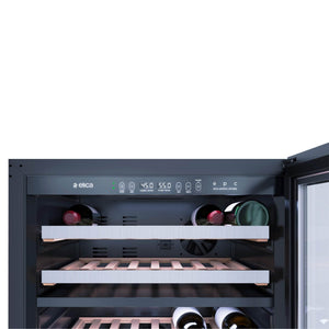 Discover the ultimate wine storage solution with the Elica RISERVA - 24" Wine Cellar Single Door Dual Zone. This premium appliance, designed for connoisseurs, passionately preserves wine quality and taste with optimal conditions. As a leader in ventilation, Elica carefully maintains the ideal environment for aging and storage, regulating temperature, humidity, light, and vibration. Each bottle is easily accessible and secure with beechwood shelves, providing a truly premium experience.