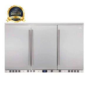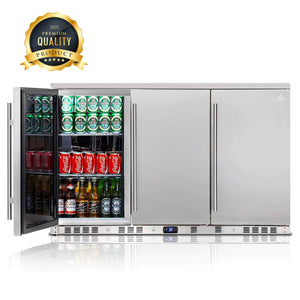 Great for the outdoors, this 3-doored full stainless steel outdoor beverage fridge looks fantastic and performs even better. Large enough to accommodate your storage needs while still offering a sleek design, this unit is the perfect way to quench the thirst of your friends hanging out in the yard, or your customers enjoying the rooftop patio.