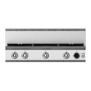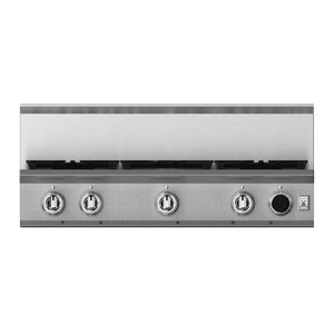 The 36" rangetop offers the most powerful gas burner available to the home - the patented CircuFlame™ sealed center power burner. The CircuFlame burner is the same powerful burner featured on the award-winning Hestan Commercial restaurant equipment. The range top delivers extraordinary power and control to standard countertops - not to mention elegant style. The continuous grates and backlit knobs combine stunning form and function, while the precision-sealed burner system handles delicate béchamel and seared tuna steaks with equal aplomb.