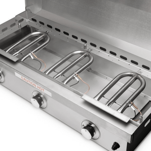 - 3 Durable U-shaped high-powered stainless steel burners