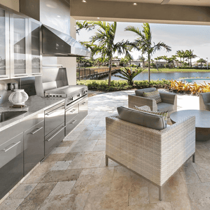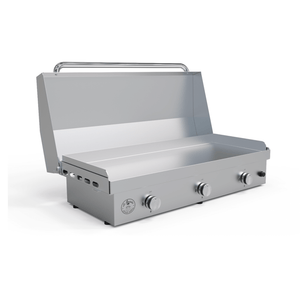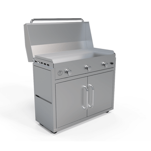 The 41-inch The Big Texan Griddle is perfect for grilling for up to 30 people. Can be used as freestanding or built-in.
