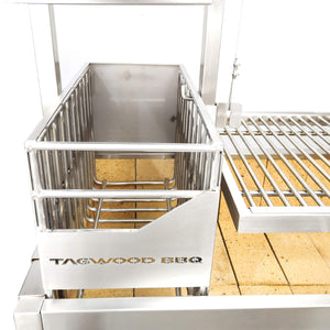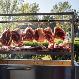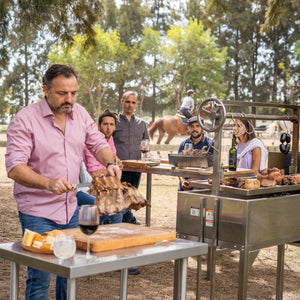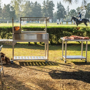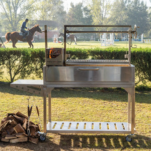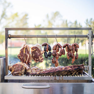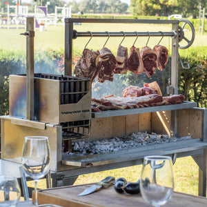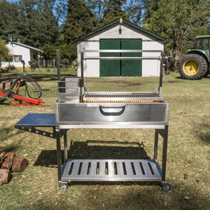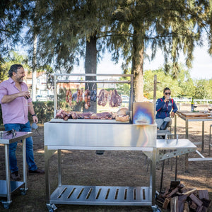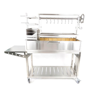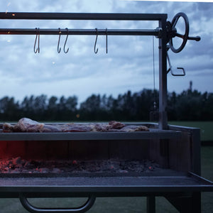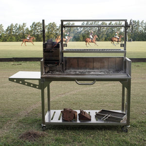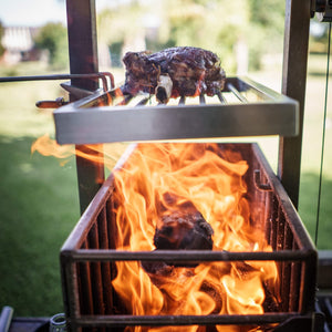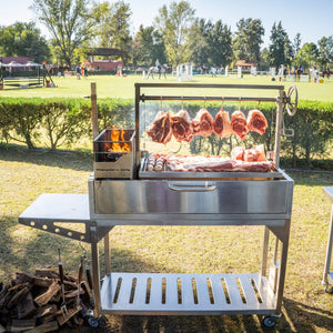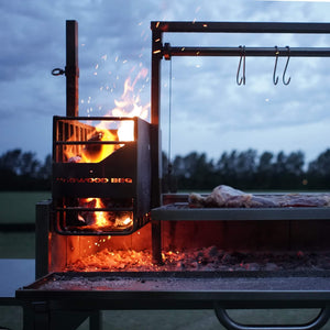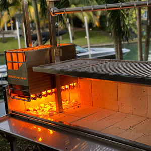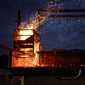 The firebox gaucho style brasero allows you to light up the charcoal quicker and with less effort. It keeps your fire lit and away from the food. You can use wood charcoal or firewood based on your preference to grill like a gaucho. Slow cook some short ribs for 4 hours, some argentine sausage or chorizo or smoke a fish on the main grate while cooking some potatoes on the secondary grate.