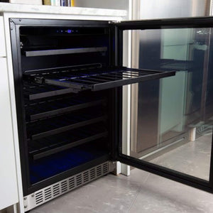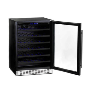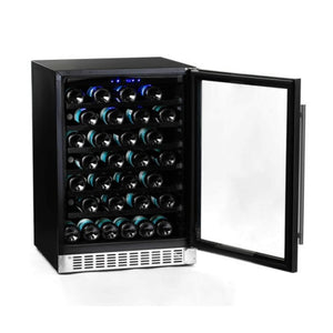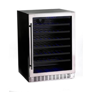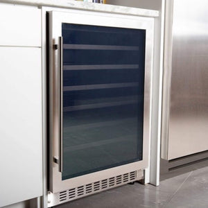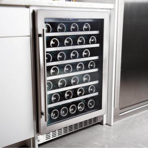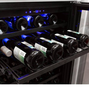 Discover the incredible versatility of Azure's wine center - whether freestanding or built-in, it can hold up to 54 bottles on 6 racks. The interior is beautifully lit with blue LED lighting, creating a welcoming atmosphere. Plus, the door can be reversed for left-handed users, and the digital display makes it simple to set the perfect temperature. Elevate your wine experience with Azure.