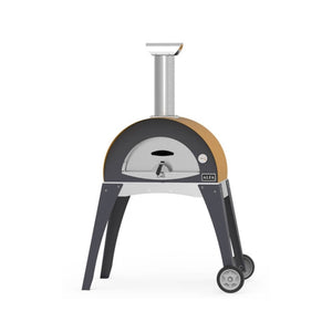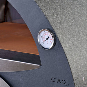 The Alfa FXCM-Counter Ciao M 27" Countertop Wood-Fired Pizza Oven delivers a top-of-the-line Italian-style wood pizza oven, blending cutting-edge design with exceptional craftsmanship. The Ciao M oven boasts a high-quality stainless steel dome, surrounded by durable European ceramic fiber, creating a heat-resistant and sturdy cooking surface. Its 3-cm thick interchangeable refractory brick floor provides unmatched heat retention, making it the ideal choice for cooking not just pizzas, but also bread, roasts, meat, fish, vegetables, cakes, and more. With a built-in pyrometer, you can easily monitor the temperature in the oven chamber, giving you precise control over your cooking. The wood handle door allows you to adjust the airflow and manage your fire, while the Ciao's flue can be easily inserted for instant cooking. Available in Yellow or Silver, the Ciao oven is the perfect addition to your outdoor kitchen, bringing the authentic taste of Italy right to your