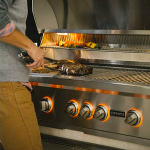 The S-Series from Coyote Outdoor Living aspires to exceed the highest standards. This grill series, available in 30", 36" or 42" sizes, offers various luxury items standard on every grill such as the Coyote stainless steel infinity burners, a rotisserie with an infrared burner, a smoker box, and RapidSear burners to help lock in natural juices and nutrients. Knobs backlit with LED lighting offer a great assist in nighttime cooking...and an impressive aesthetic.