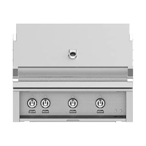 Experience powerful grilling and versatile cooking with Hestan's 36" built-in grill featuring 3 sear burners and a rotisserie burner. Hot surface ignition and monogrammed temperature gauge make grilling simple, while the spring-assisted hood offers customizable height. With stadium lighting and a warming rack, this grill is perfect for all your grilling needs.