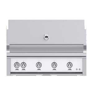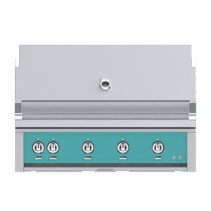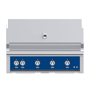 Designed with 12 elegant color finishes, this Hestan 42" built-in grill boasts 3 Trellis tubular burners, 1 sear burner, and a rotisserie burner for a total output of 118,000 BTUs. With a quick and simple hot surface ignition, a monogrammed temperature gauge, and a versatile Horizon grill hood, this grill offers powerful performance, versatile cooking options, and ample space for all your grilling needs.
